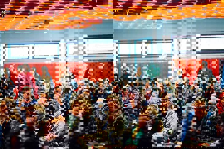 Bild från internationella kvinnodagen 2019 där vi var en av arrangörerna. Kontakta oss med din förfrågan!