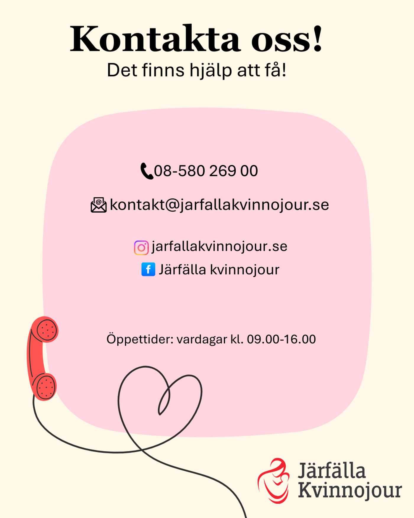 Ni kan även kontakta oss via E-post på kontakt@jarfallakvinnojour.se