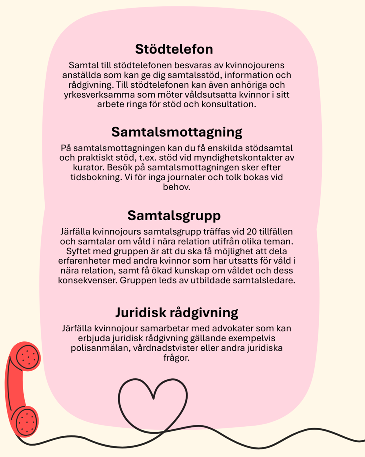 För akut stöd eller skyddat boende ring socialtjänsten i din kommun. Efter kontorstid och på helger kontaktar du socialjouren.